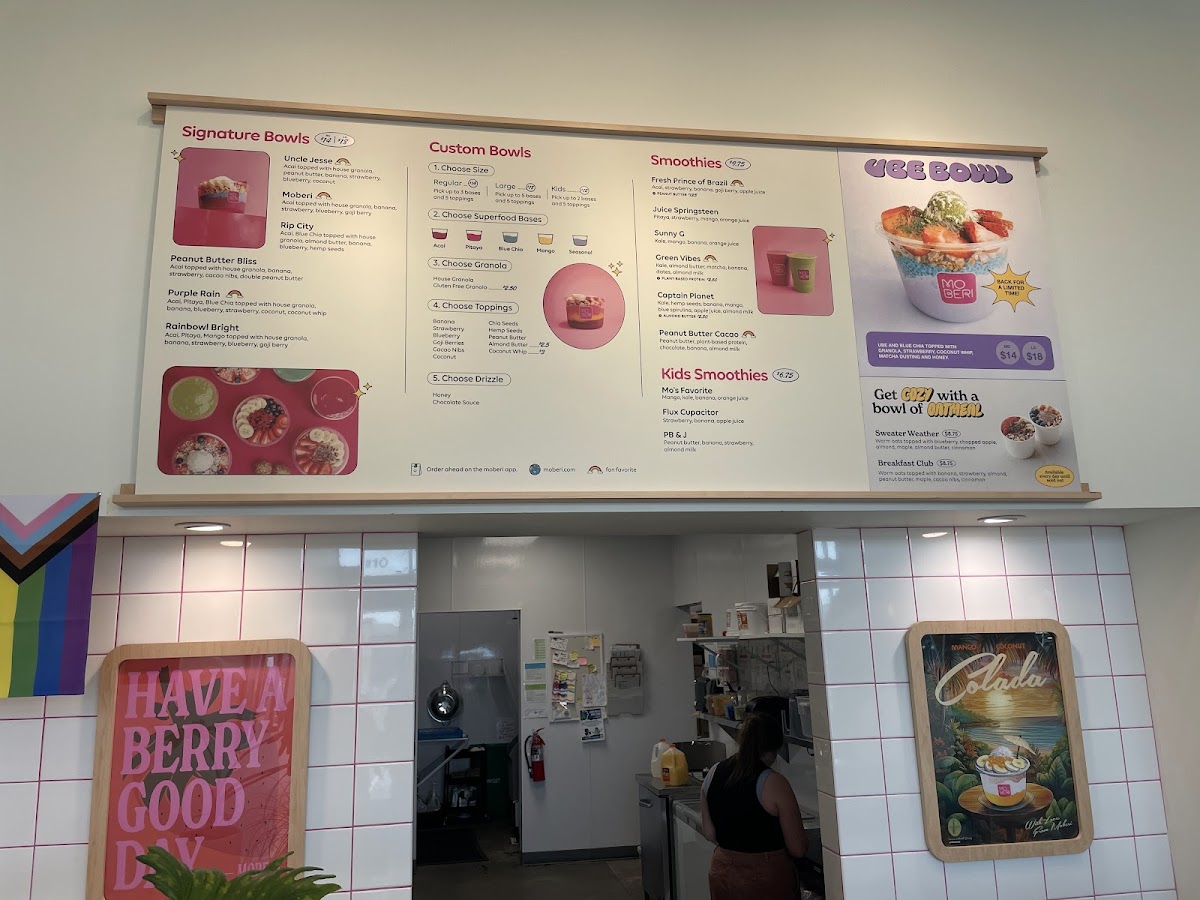 “ Moberi, I'm in love. So glad I found this place but I'm getting kind of addicted! So far, tried their moberi bowl, bee free bowl, and rainbowl bright . Loved them all. It is made to order really quickly. So, I spend only a few minutes indoors but still appreciate the aesthetically done interiors and the fun music playing. It's a vibe! ”